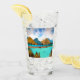 Ett abstrakt med ett unikt struktur som visar en bergsplats och sjö med en solitär rowboat och en fantastisk soluppgång och solstrålar i blå, teal, cyan och guld.