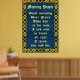 Digital gräns/ram med foton av solblommor på blå mönster-bakgrund med Lord's Prayer i gult garramond.
