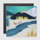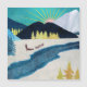 Ett digitalt landskap med ljusa färger och struktur som visar en musherrar med ett hund sled lag och en glödande rosa i blå, guld, cyan och gult.