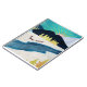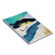 Ett digitalt landskap med ljusa färger och struktur som visar en musherrar med ett hund sled lag och en glödande rosa i blå, guld, cyan och gult.