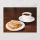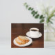 En bild av en fin kopp av kaffe med lite bananbröd att äta? Kommer med ord och inbjudan till "Morgonte... vem som helst"?