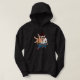 En svart hoodie med tecknet mori jin på framsidan och koreanska tecken på baksidan som lyder "strejka ned Geundoowun"