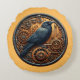 En slående ångpunk-inspirerad korp sitter i mitten av en invecklad urverksmekanism, omgiven av detaljerade kugghjul, nycklar och utsmyckad metallarbeten. Mot en varm gyllene bakgrund med dekorativa blomsterindustriella hörnaccents smälter denna design samman vintage maskiner med gotisk elegans. Perfekt för älskare av ångpunkkonst, korpar, mekanisk estetik och mörk, nyckfull dekoration. Detta djärva och detaljerade stycke gör ett unikt uttalande på kläder, klistermärken, heminredning och presenter.