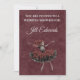Denna Dansande gotiska skelett bröllopsdusch-inbjudan är där makaber kvickhet möter kunglig elegans. Med en fantasifull, handillustrerad kvinnlig skelett i en skrynklig kolgrå klänning, dansar hon glatt mitt i ett skurar av dammiga rosa rosblad. Mot en rik, vinröd texturerad bakgrund som frammanar känslan av åldrande viktoriansk sammet, är denna design det perfekta sättet att fira en brud som älskar en "Till döden" estetik. Det är ett sofistikerat, "Mörkt Akademiskt" perspektiv på en bröllopsbrunch eller lunch, som blandar mysteriet av ett stenslott med den livliga energin av en evig firande.