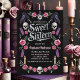 Bjud in dina gäster till en kusligt vacker Sweet Sixteen-fest med denna inbjudan inspirerad av mörk akademi. Den gotiska designen har slående silvertypografi mot en djup svart bakgrund, accentuerad med antika nycklar och mystiska korpar. Denna unika inbjudan sätter den perfekta stämningen för en minnesvärd och förtrollande kväll.