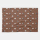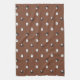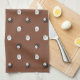 Kökshandduk som visar ett sött får eller lamm mönster på brun bakgrund. I mönster ingår ätliga vita lamm och svarta lamm, samt små gräsbuntar i grönten.