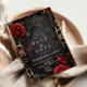 Lägg era gäster i en atmosfär av god opulens med den här baroque blommigt bröllop-designen. Deep crimson dahlias, ornate guld scrollwork och vintage black struktur ram, din personlig text i dramatisk elegans. Perfekt för Halloween bröllop, segrande teman eller moody romantiska händelser. Den här designen anger tonen för ett oförglömligt firande som styrts i mysterium och stil.