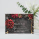 Lägg era gäster i en atmosfär av god opulens med den här baroque blommigt bröllop-designen. Deep crimson dahlias, ornate guld scrollwork och vintage black struktur ram, din personlig text i dramatisk elegans. Perfekt för Halloween bröllop, segrande teman eller moody romantiska händelser. Den här designen anger tonen för ett oförglömligt firande som styrts i mysterium och stil.
