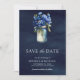 Mörk blått Blommigt Mason Burk Photo Bröllop Spara Datumet