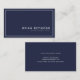 Ett mörk blått kontaktkort för att presentera dig med elegans... framsida: ett tunt gräns med eget namn och yrke i nedre högernas hörn på djupblå och oformaterad bakgrund; baksida: linjer på text (företag namn, mobila, e-post och adress) på marblått.