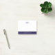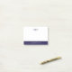 Anteckningsblock efter det att den tagits i bruk med en ren design i vitt och mörk blått. Lägg till din initialer och kontaktinformation.