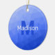 Mörk blått geometrisk maskstorlek mönster Monogram Ceramic Julgran Ornament. Monogram Anpassa med din anpassningsbar från början och namn. Triangelns geometriska nät med lätt mörk blått, kompakt gradient modern design.