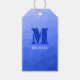 Mörk blått geometriskt nät mönster Monogram Presentetikett