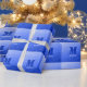 Mörk blått geometriskt nät mönster Monogram Presentpapper