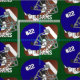Fotboll med mörk blått fotbollshjälm och grått ansikte-vakt. Offset mönster. Anpassadets vita nummer på hjälmen och namn. Gröntens bakgrund. Färg av nummer, namn och bakgrund kan ändras efter att du har klickat på Anpassa den.