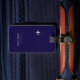 Ett enkelt, diskret och lätt igenkännligt mörk blått resetillbehör (bagagemärke), personlig med ditt eget namn och initialer, med bilden av ett litet flygplan ... för att identifiera dina tillhörigheter.