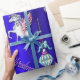 En vacker papper julomslutning i blå enhörn med mycket söt mönster med glansigt, rosa och guld vingar, guld-horn med gnistor från toppen, söt lila och blått hår och svan, golden hoves och sparkigt silver. Det finns färgstarka julprydnader som hänger runt omkring dem, och i stället för det vanliga God jul önskar de er en magisk jul, i regn, mousserande text med små vita gnistor. Detta charmerande royal blått julomslag skulle vara det lämpligaste att presentera för alla enmajsprojekt älskare, eller till och med göra en underbar skrapbok eller avsvärja enmajsprojekt.