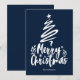 God jul i dekorativt skript med stil-teckensnitt med konturen Julgran och stjärna på toppdesignen. Detta mörk blått julkort är designat så att du kan byta färg i bakgrunden, grafiken och även komma in i din familj namn.