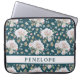 Klassiskt och vackert marinblått med söt blommigt botaniskt och namn laptop sleeve.