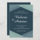 Mörk blått Mint Geometric Elegant Modern Bröllop Inbjudningar