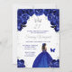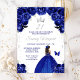 Den här eleganten och det glamorösa födelsedagsfest inbjudan har en vacker prinsessa med mörk hud i en mörk blått boll-gryna. Texten kombinerar handskript och modernt sans serif typsnitt för ett klassligt och sofistikerat utseende. Blommigten, fjärilen och silver-konetti skapar perfekten blandning av rustika och chic. Grafik efter www.etsy.com/uk/shop/SunflowerDayLove