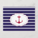 Mörk blått Nautisk vit Rand Red Anchor Vykort