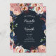 Mörk blått och Rosa Vattenfärgen Blommigt Bröllop Inbjudningar