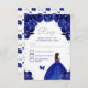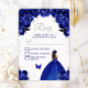 Den här eleganten och den glamorösa OSA kort har en vacker prinsessa med mörk hud i en mörk blått boll-gryna. Texten kombinerar handskript och modernt sans serif typsnitt för ett klassligt och sofistikerat utseende. Blommigten, fjärilen och silver-konetti skapar perfekten blandning av rustika och chic. Perfekt för en sweet sixteen eller födelsedagsfest. Grafik efter www.etsy.com/uk/shop/SunflowerDayLove