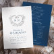 bröllopsprogram i silver av hjärtkransens monogram. Anpassa din egen utformning av monogram initialer. På mörk blått, silver och skarp vit. Andra färg och matchande artiklar är tillgängliga. Perfekt för ett preussiskt blått eller klassiskt silver, vitt och blått temat bröllop. © Heart wandekonst and design by Sarah Trett for www.mylittleedenweddings.com on Zazzle