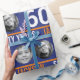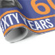Flottblått och kontrasterande fotomall för orangens födelsedag 60 års papper förpackning. Grafikfödelsedagslagets inslagning pappert anpassar dig med ditt eget namn och tre foton av din födelsedagspojke. Andra matchande artiklar är tillgängliga. Unik design av Sarah Trett för www.mylittleeden.com