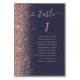 Det moderna kortet för bordsnummer i bröllop som är lämnat kant i eleganten har ett faux glitter guld i ro. Ord "bord" visas i handskriftsskript i ro rosa på mörk blått bakgrund. Lägg till namnen för de gäster som tilldelats varje bord.