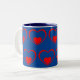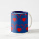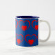 Röda hjärtan mörk blått tvåtonshundrakaffe Mugg.