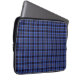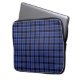 Modern plaid mönster laptop sleeve mörk blått med svarta och vita accenter.