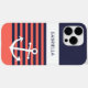 Enkelt ankare för frakt av contemporary, på en klassisk och chic marin orange med blå och ljust halvljus, korallröd färgad rand mönster. Med utrymme att anpassa eller anpassa med ett namn, initialer eller monogram som du väljer på en vit färgad. Vackra, moderna och coola som täckmantel för den trenderande och konstnärliga höftledaren, artsy motif älskare som vill skydda sin mobila från damm och smuts, bära och tårar. Den här designen finns i Apple iPhone 6, 7 och 8 Plus, 10 eller X, XR, XS, 11, 12, 13 Mini, 14, 15 Plus och Pro Max-caseser. Visa av stil, se modernt trendig och känn snyggt med en unik design på ett mobilt enhetstillbehör som du vill ha.