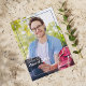 Unikt och trendig grattiss student-meddelande och firande-inbjudan, inramat med en snyggt mörk blått och vit gräns mönster. Med utrymme att anpassa eller anpassa sig med ett foto kan du läsa om evenemangen namn i student, klassåret studenten, högskolan, framtida högskolan eller universiteten namn och firande party. Låt familjen, vännerna och grannarna veta att det finns ett redo i lycklig student för att erövra världen, och inbjudan alla för att kom fira evenemanget i lycklig med er!