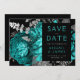 Mörk Blommigt Teal Blue Silver Bröllop spara datum Inbjudningar