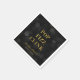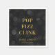 Elegant servett med orden "Pop Fizz Clink" i falskt guldfolie mot en bakgrund med mörkgrå bokeh-ljus. Perfekt för förlovningsfester, bröllop, årsdagar eller andra evenemang.