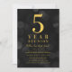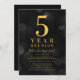 Klassens återföreningsinbjudan med ord "5 års återförening" i faux guld mot mörk grått bokeh ljus mönster bakgrund. Inbjudan har en baksida av mörkens grått. Anpassa den här inbjudan med dina detaljer genom att ersätta platshållartexten. Om du vill ha fler alternativ, t.ex. att ändra teckensnitt, storlek text / färg eller mellanrummet mellan brev, klickar du på knappen "Anpassa". *Observera att Zazzle Watermark som visas i zoomförhandsvisningen INTE visas på den färdiga tryckta produkten. © Rosewood and Citrus