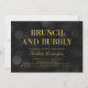 Klassy Inbjudningskort för möhippan med ord "Brunch and Bubly" i faux guld-folie mot bakgrund av mörken vid ljus mönster. Inbjudan har baksidan mörk färg. Anpassa den här inbjudan med dina detaljer genom att ersätta platshållartexten. Om du vill ha fler alternativ, t.ex. att ändra teckensnitt, storlek text / färg eller mellanrummet mellan brev, klickar du på knappen "Anpassa". *Observera att Zazzle Watermark som visas i zoomförhandsvisningen INTE visas på den färdiga tryckta produkten. © Rosewood and Citrus