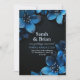 Mörk bröllopsinbjudan glitter blåa blommor inbjudningar