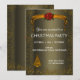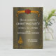 En elegant mörk Bronze och julfest i guld, med en gyllene banderoll med säsong röd poinsettia och ett gyllene Julgran på brons bakgrund, alla inramade med guld glitter. Kortets baksida har den röda poinsettia bouquet. (Designer-anteckningar: Observera att inbjudan kan anpassas helt och hållet för alla typer av jultemat party som du vill ha, inklusive inbjudningskort för födelsedagsfest under jul, bröllopsinbjudningar under jul och mycket annat).