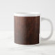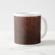 Ett jumbo eller extra stort mugg med ett foto av brunt mörk eller gammalt träpaneler.