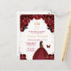Denna eleganta och glamourösa födelsedagsinbjudan presenterar en vacker prinsessa med mörk hy i en burgunderröd balklänning. Texten kombinerar handskriven skrift och moderna sans-serif-teckensnitt för en klassisk och sofistikerad look. De blomsterarrangemang, fjärilar och gyllene konfetti skapar den perfekta blandningen av rustik och chic. Grafisk design av www.etsy.com/uk/shop/SunflowerDayLove