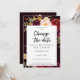Sak förändras. Skicka den här vackra burgundy marsala-blommigten om du vill ändra datum och vid behov adress och tidpunkt för bröllop eller händelsen. Kortet kommer i burgundi, mörk burgundi, svart, vit och rosa bakgrund. Se våra samlingar "Ändra datum" eller "Burgundy Marsala & Blommigt" för att se det andra färgen.