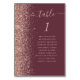 Den vänstra kanten på detta eleganta moderna bröllopsbord nummerkort har en roséguld falsk glitterkant. Ordet "bord" visas i rosarosa fantasifull handskriven skrift på en mörk burgundy bakgrund. Lägg till namnen på dina gäster som är tilldelade till varje bord.