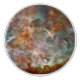 Karina Nebula-visningen, som är uppsvälld av monstruösa stjärnor, tränger in över Carina-konstellationen, ungefär 8 500 ljusår från jorden. Den här kolossala tapeten av gas- och stoftväxlingar i Carina-Sagittarius Arm i vår Mjölky Way galaxy. Eldtendrillerna utbröt från nebulas hjärta, skulpterade av intensiv strålning från unga, monstruösa stjärnor som Eta Carinae. Mörkar av damm vävar genom den glödande gasen och antyder de råvaror som kommer att föda framtida sol. Carina Nebula står som skapelns kauldron, ett andligt vittnesbörd om den våldsamma skönheten hos stellära födslar. - Denna akt är offentlig i Förenade Stater eftersom den endast skapades av NASA.