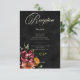 Gå in i en värld av elegans med vårt mörk för blommigt och moody mottagningskort för bröllop. Designat för att fånga sinnena, skryter denna design med en slående svart bakgrund som är försedd med en andningsspricka av autologa blommigtar i djup burgundi, bränd orange, krämfärgade nyanser och beröring av lyxuriöst guld, kompletterad med lush oliv grönt foliage. Den grå texten flyter att romantik läggs till i den allmänna texten. Se till att säsongen är fulländad och ange tonen för din speciella dag med den här fantastiska designen, så att du lämnar ett bestående intryck på dina gäster. Skapat av Farmhouse Press.