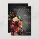 Gå in i en värld av elegans med vår blommigt mörk och moody bröllop spara datum-kort. Designat för att fånga sinnena, skryter denna design med en slående svart bakgrund som är försedd med en andningsspricka av autologa blommigtar i djup burgundi, bränd orange, krämfärgade nyanser och beröring av lyxuriöst guld, kompletterad med lush oliv grönt foliage. Den grå texten flyter på ett mjukt oskärpa av ljus och tillför romantik en liten aning till den övergripande allren. Se till att säsongen är fulländad och ange tonen för din speciella dag med den här fantastiska designen, så att du lämnar ett bestående intryck på dina gäster. Skapat av Farmhouse Press.