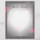 Ett vackert skrivpapper har en hjärtdesign som skakar mitten och elegant svarta gräns, där röd ros lägger till stänk i färg.