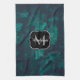 Mörk emerald grönt ivy löv vatten droppar Monogram Kökshandduk